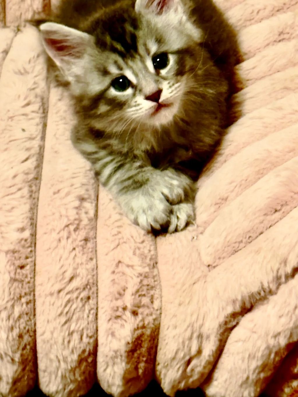 Tigger is a very cute blue silver polydactyl male Maine Coon Kitten he loves to cuddle on your lap and will be a big boy.